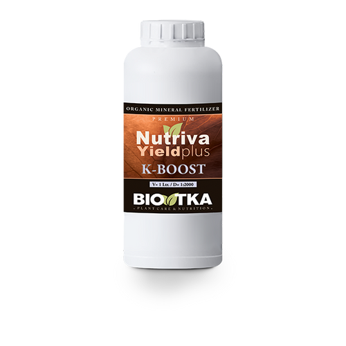 Kalium (K) is betrokken bij talrijke processen in de plant, zoals de regulatie van de CO2-opname tijdens de fotosynthese, de vorming van ATP en de regulatie van water in de plant. Kalium is daarom belangrijk voor de kwantitatieve ontwikkeling van de plant en Bio TKA Nutriva Yield Plus kan worden gebruikt aan het einde van de bloeifase om de opbrengst te verhogen.